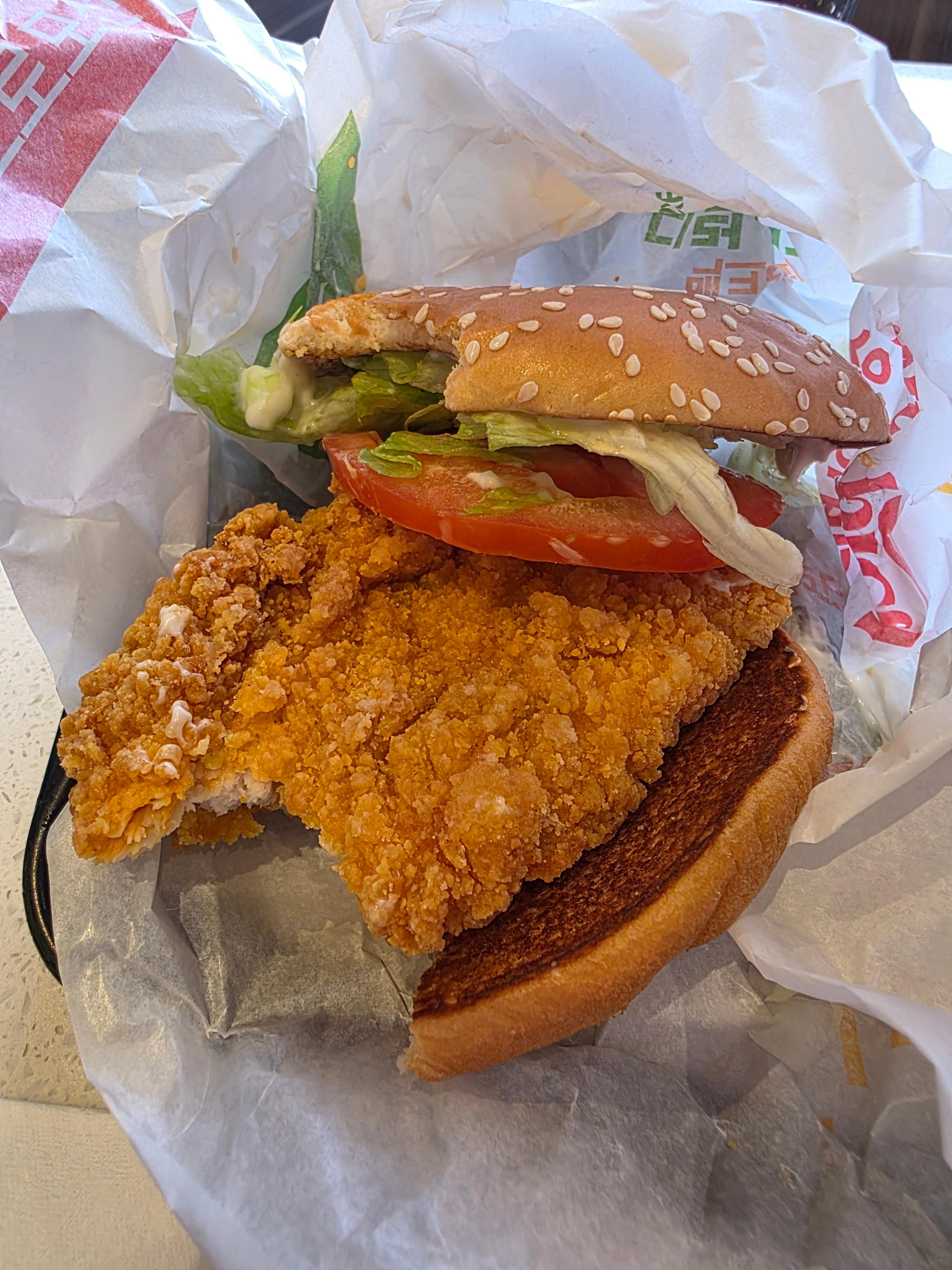 상하이치킨버거가 이렇게 날씬했었나? 비주얼부터가 실망스럽게 생김.😂😂😂 오는길에 맘스터치있던데. 싸이버거 먹을껄.